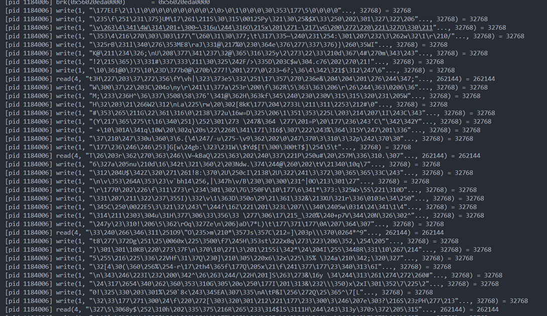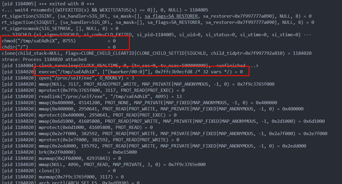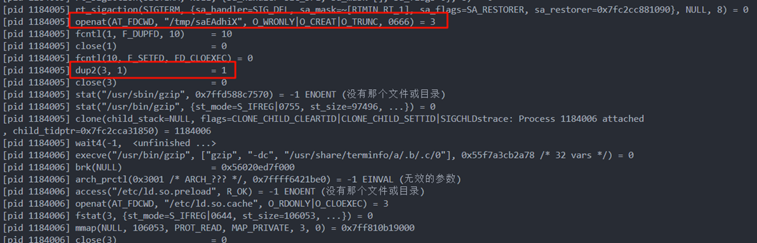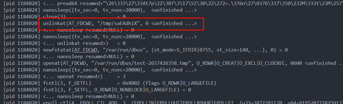 该文件是个二进制文件,无法查看具体执行了什么,此时选择手动执行该文件,同时用strace追踪该文件启动时的系统调用过程: