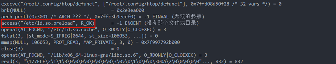 文件中加载的动态链接库实现的,所以解决方式是将该文件移除或重命名:mv /etc/ld.so.preload /etc/ld.so.preload.bak