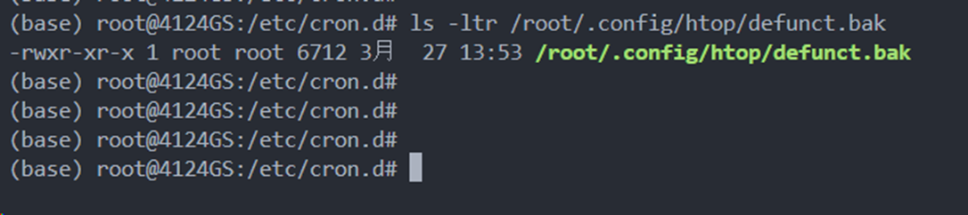 可以看到,实际上是去执行/root/.config/htop/defunct文件,也的确在该目录下发现该文件(已经重命名):