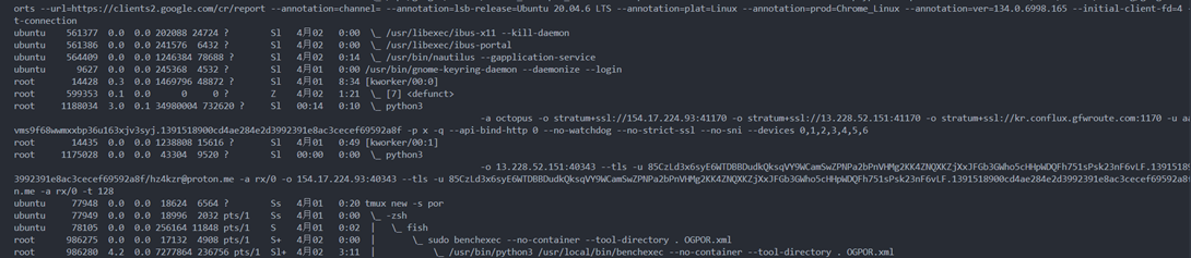进程中带有octopus、stratum关键字,以此作为进程线索。