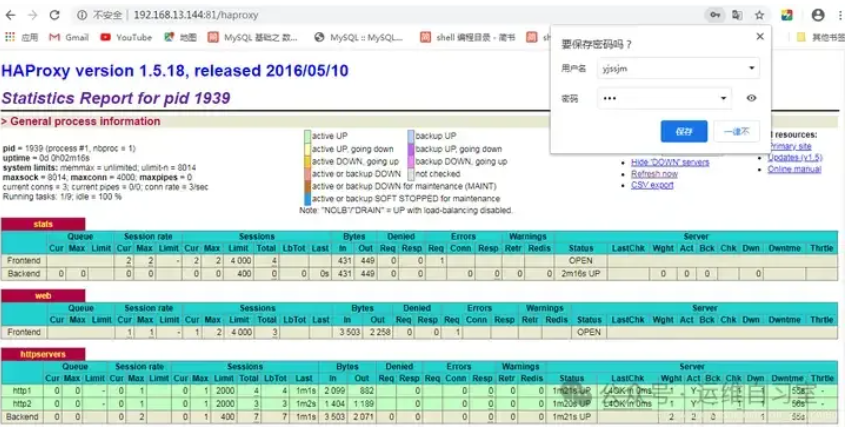 stats auth yjssjm:123 #用户认证,客户端使用elinks浏览器的时候不生效