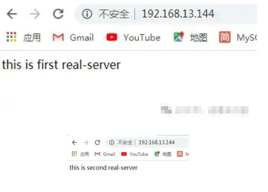 [root@real-server1 ~]# echo "this is first real-server" > /usr/share/nginx/HTML/index.html #方便区分,看出效果