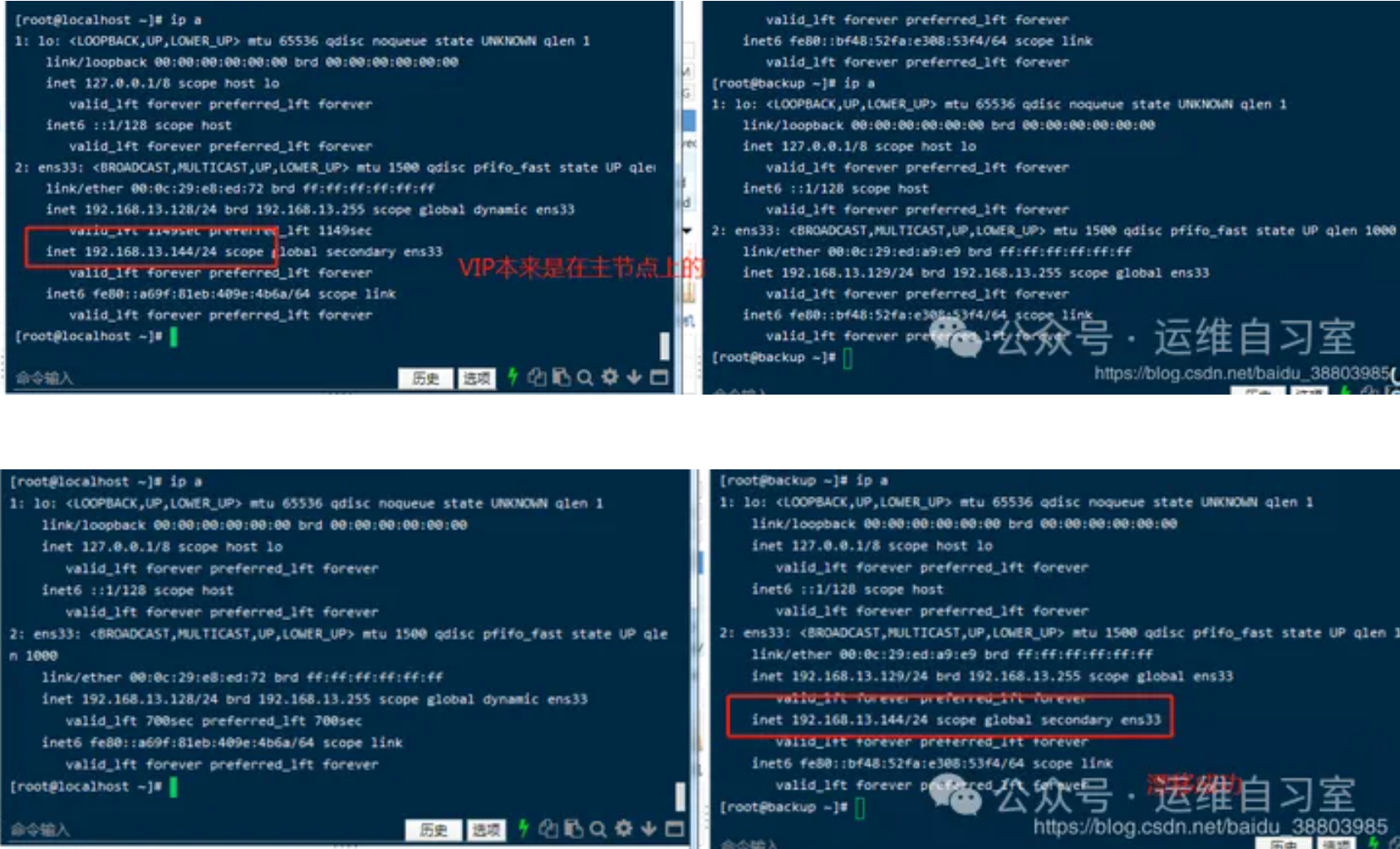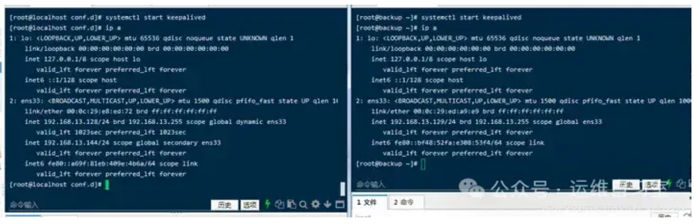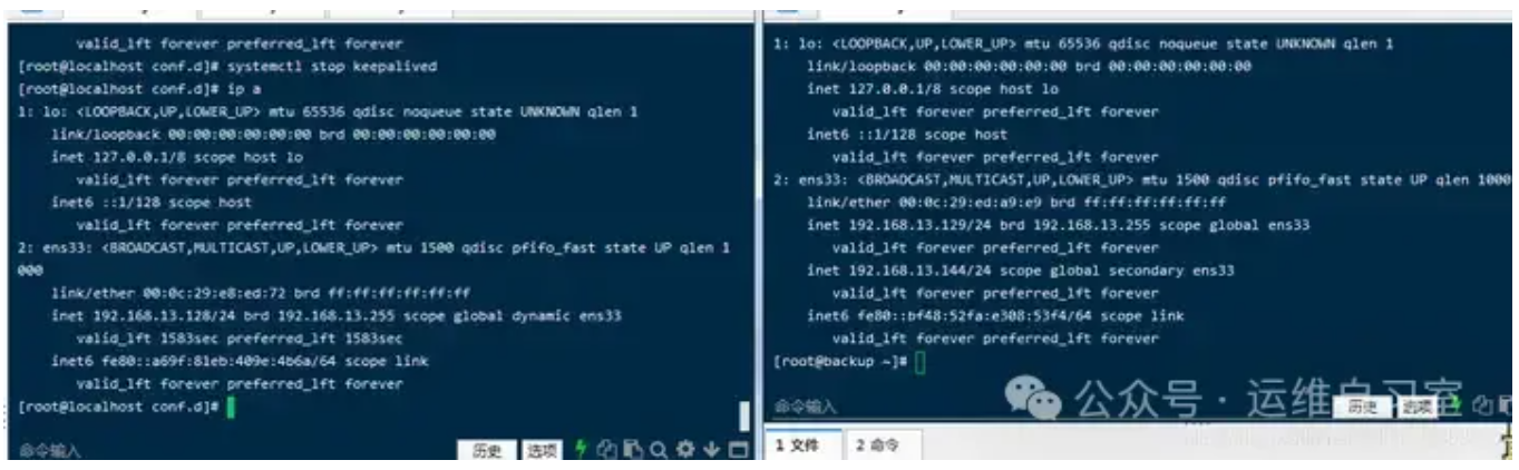 查看两个节点服务器,你会发现VIP在主节点