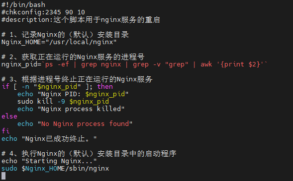 注意:脚本名称不要包含有“nginx”的字符串,否则该脚本会被自己终止掉。