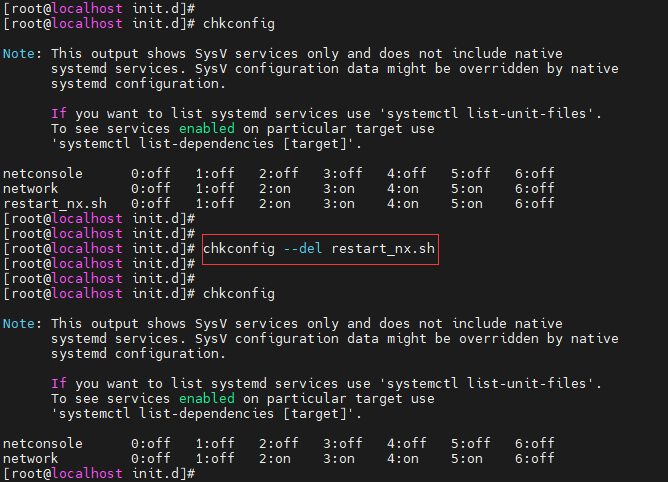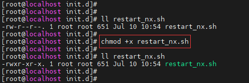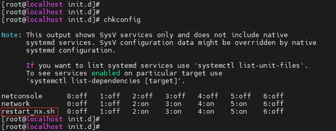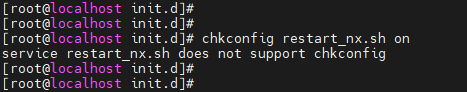 注意:如果脚本中没有“#chkconfig:2345 90 10”类似注释,则会报错“service restart_nx.sh does not support chkconfig”
