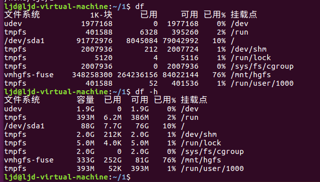 df命令可以查看系统的磁盘分区信息,侧重在文件系统级别的磁盘占用方面