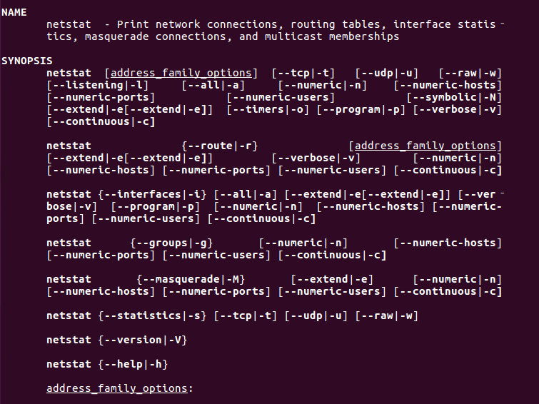 此命令可以获取网络相关信息,可以打印网络连接、路由表、接口状态、多播成员