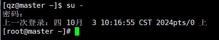 2)超级用户切换到普通用户(不需要输入普通用户密码)