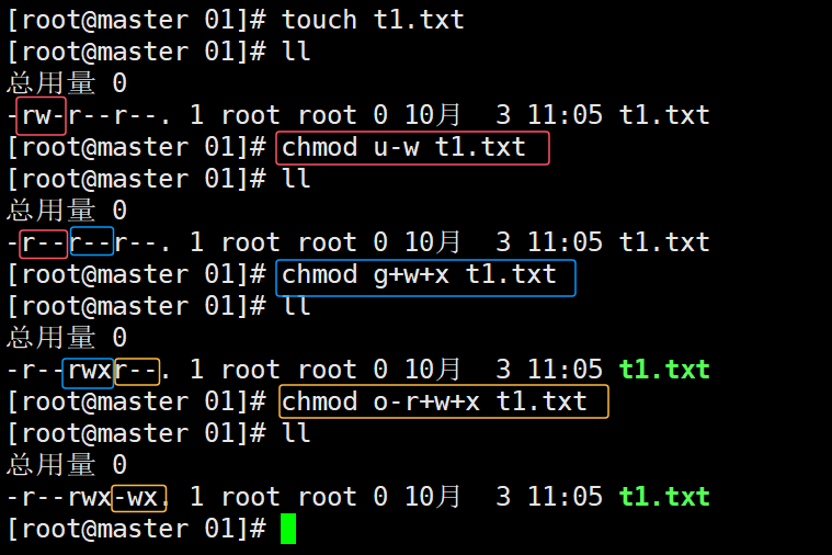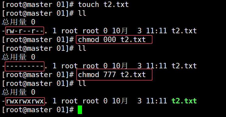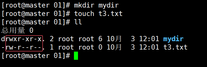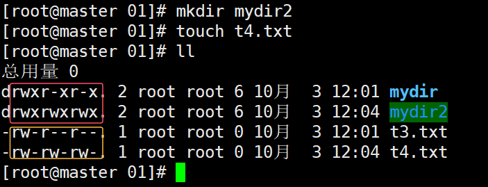 通过上图我们可以看到新目录和文件的权限发生了改变