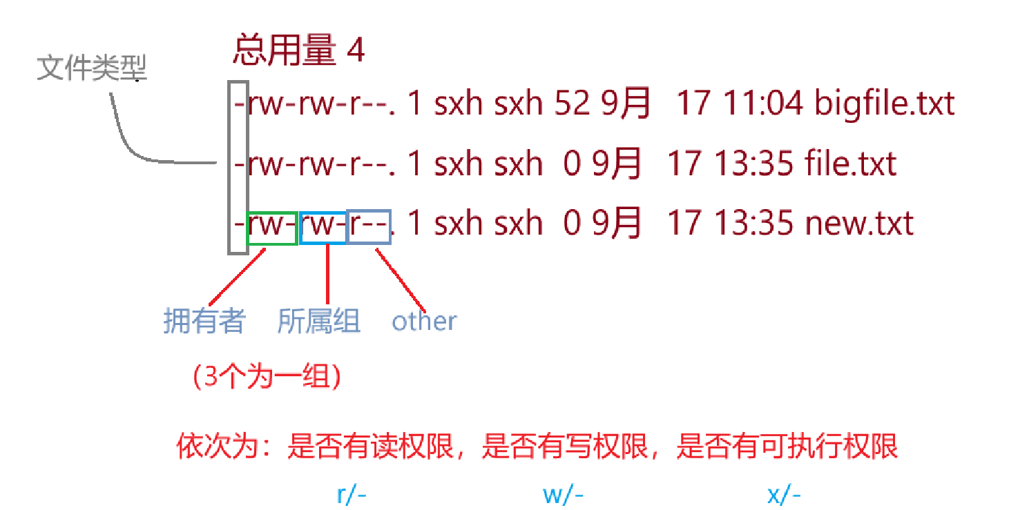 文件和文件目录的所有者所在的组的用户:g---Group(所属组)