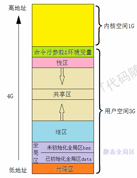 更确切的说,在Linux系统下的进程模型中,aslr对于内存排布的影响如下: