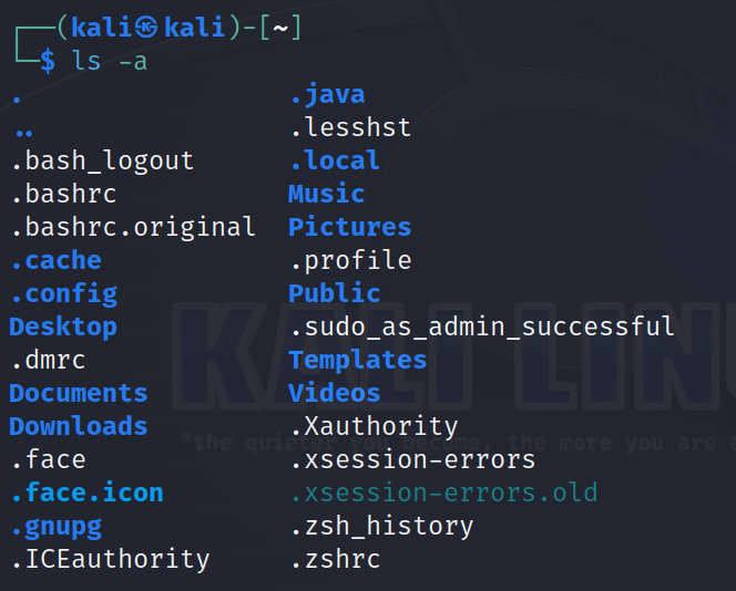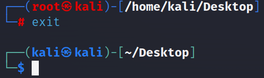 这里面的第一个kali 代表用户名,第二个kali 代表主机名,~ 代表普通用户的家目录,$ 代表普通用户,这些都是命令提示符。