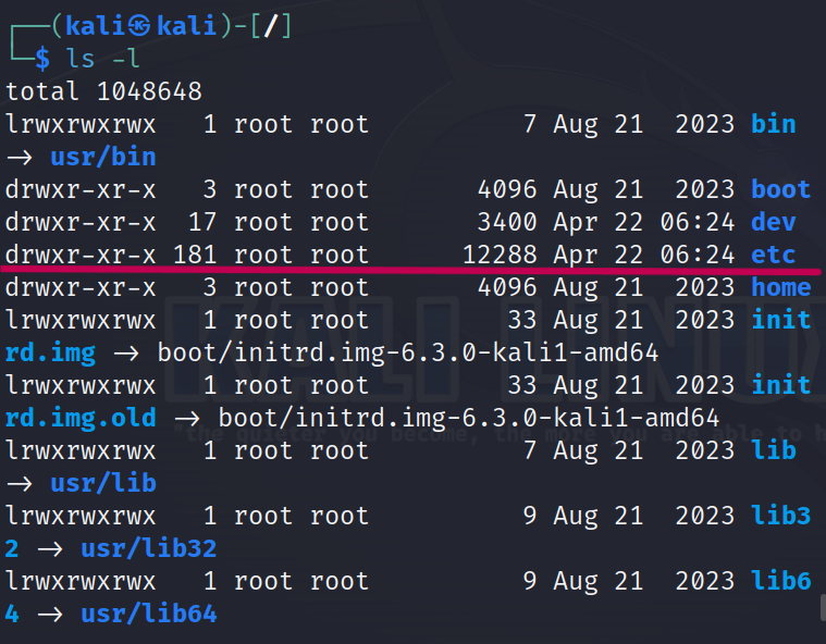 这个命令后可以看到很多像drwxr-xr-x 181 root root 12288 Apr 22 06:24 etc
