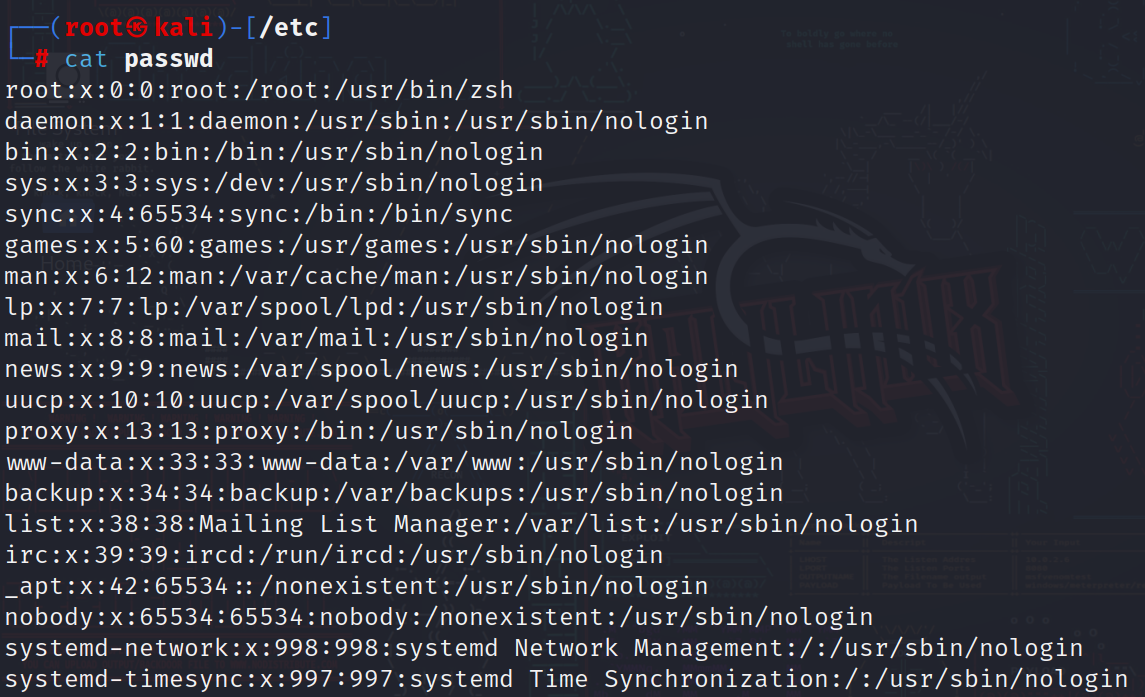 cat /etc/passwd