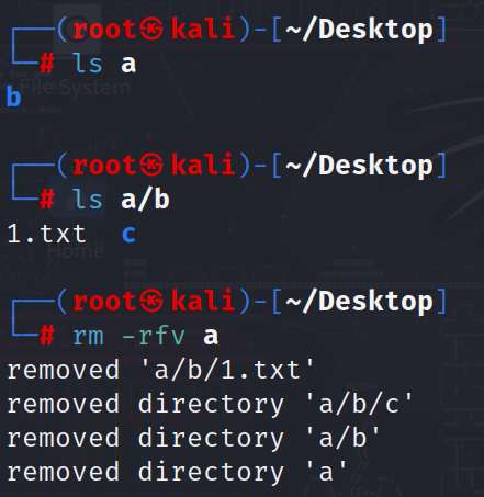 -r 递归删除 -f强制删除 -v查看删除过程