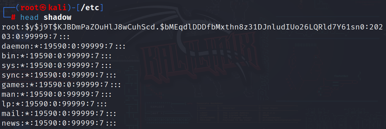 3.shadow:存放用户密码的文件。这里可以看到一些关于用户密码的信息,这些都是以9个字段组成,以冒号隔开。