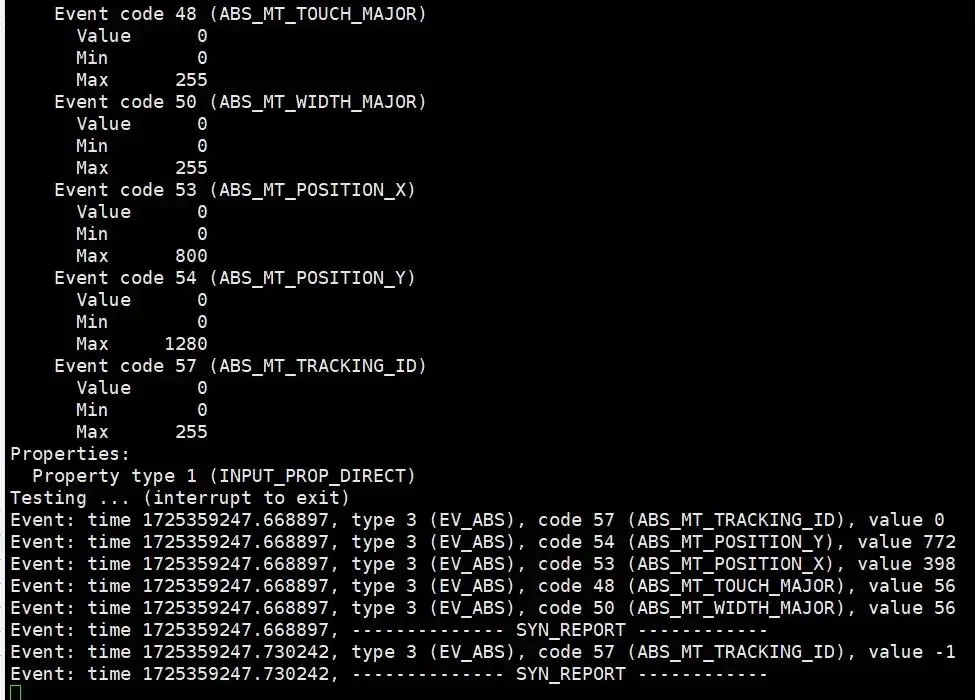ABS_MT_TOUCH_MAJOR 和 ABS_MT_WIDTH_MAJOR:触摸点的主要轴的长度和宽度,通常用于表示触摸区域的大小;