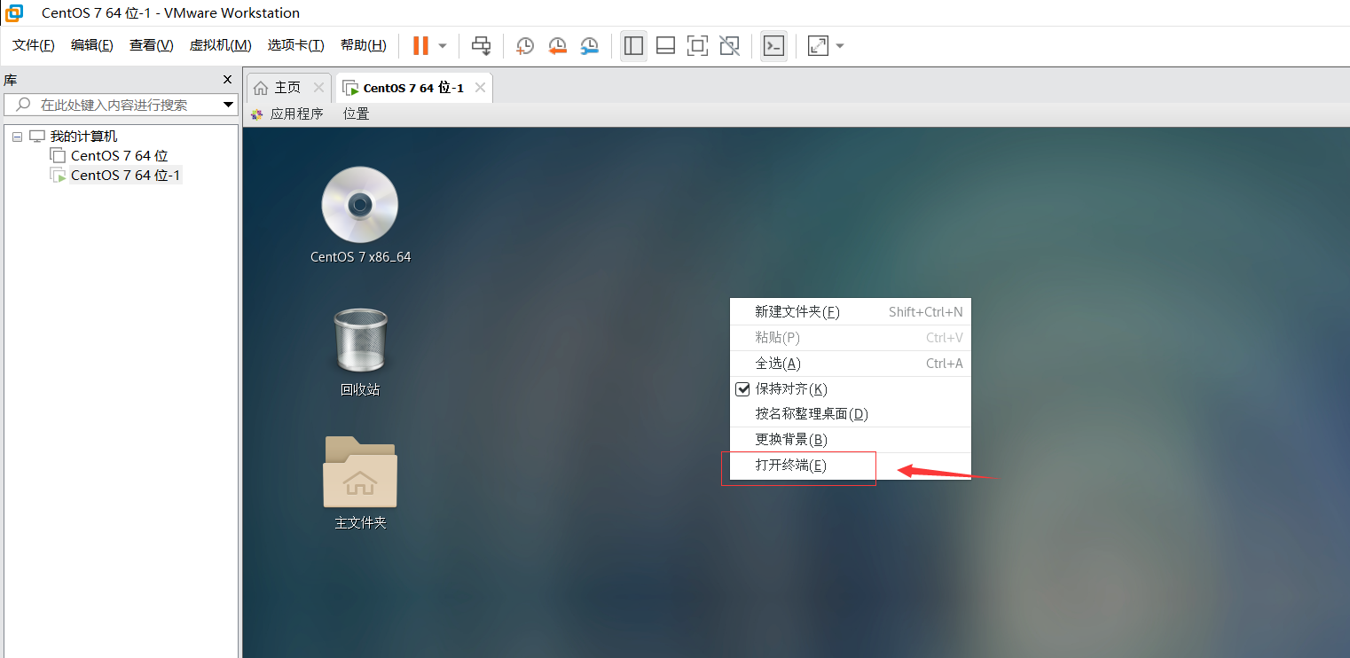 接着启动虚拟机,右键打开终端进行配置,如下所示: