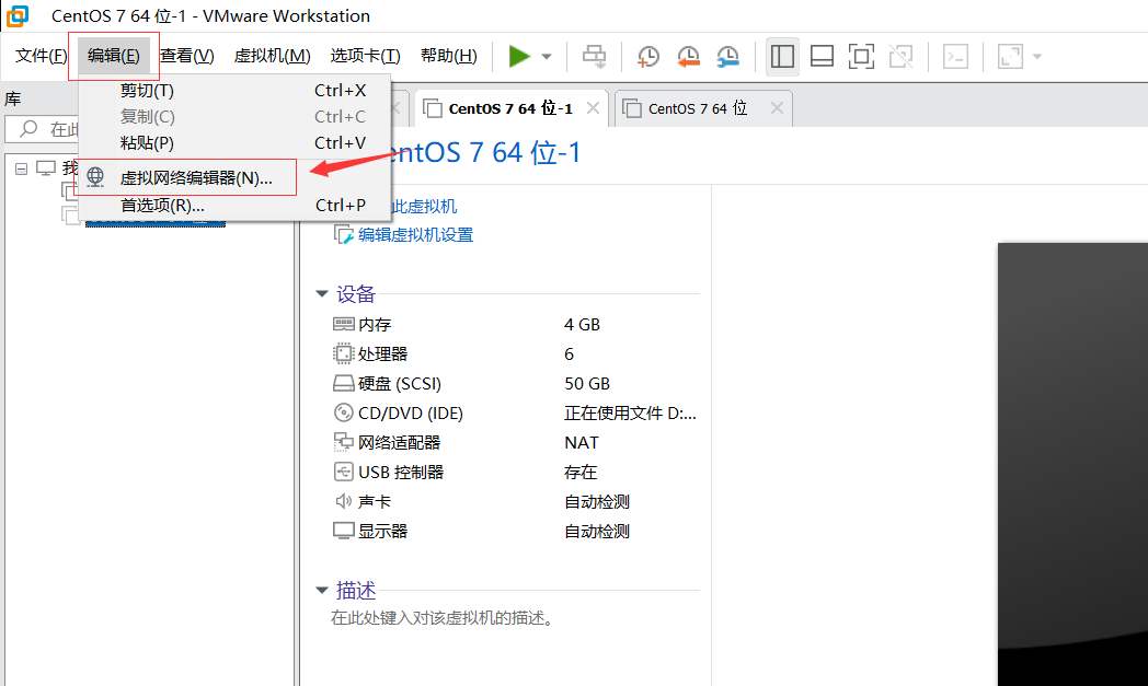 选择虚拟网络编辑器: