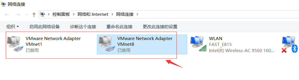 注意:VMnet8网络适配器如果没有用的话记得把它禁用掉,开启的话会影响宿主机(本机)的网络速度。
