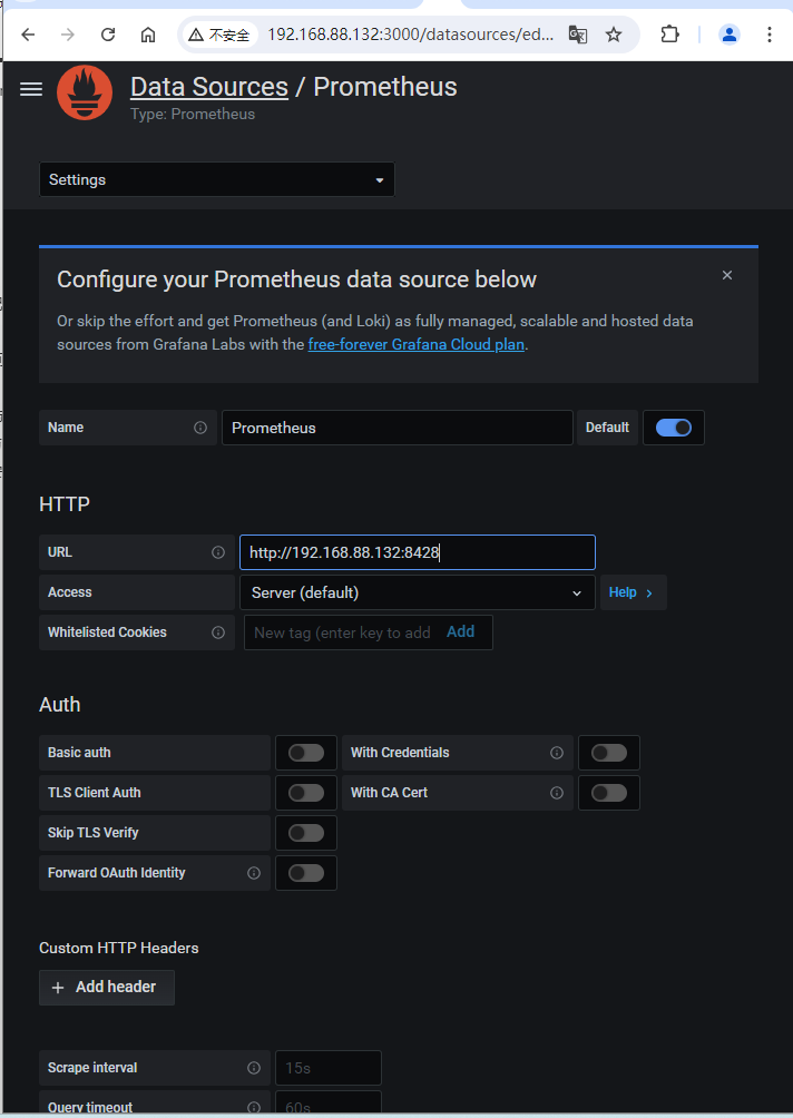 使用以下URL创建 Prometheus数据源 (创建数据源时仅修改URL