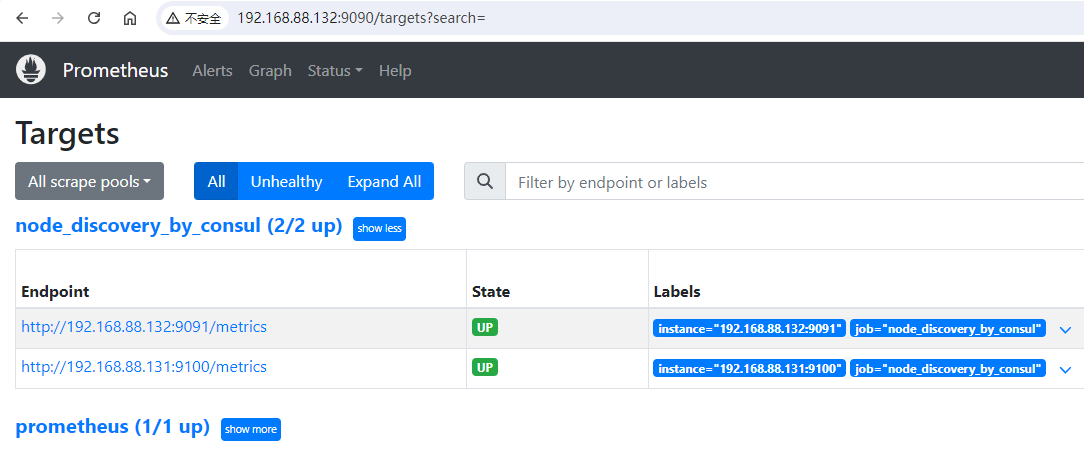为了访问采集Consul集群相关服务的指标,需要正确配置本地运行的Prometheus实例。