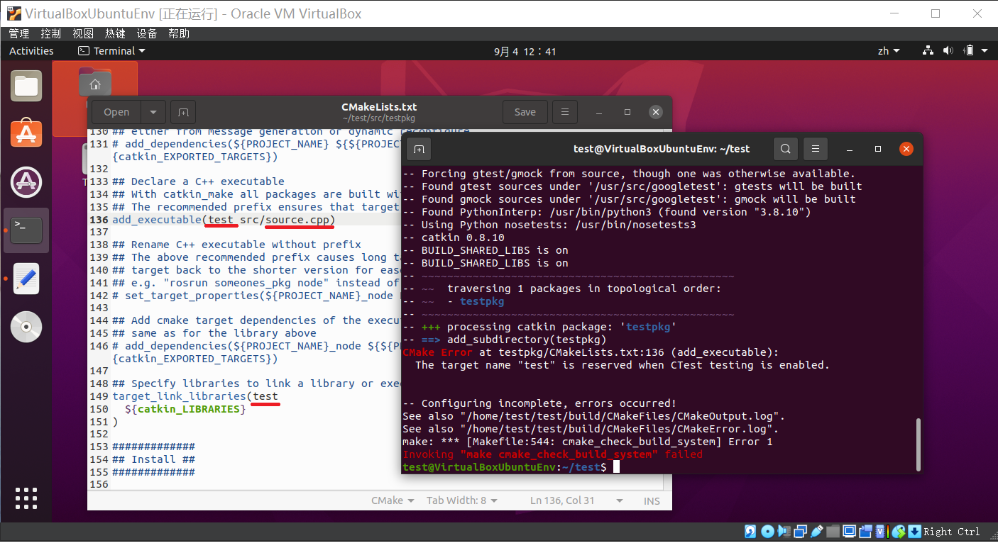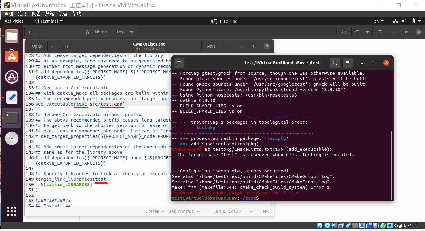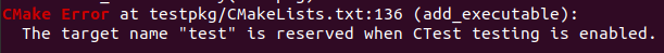 ROS遇到的问题“The target name “test“ is reserved when CTest testing is enabled”.