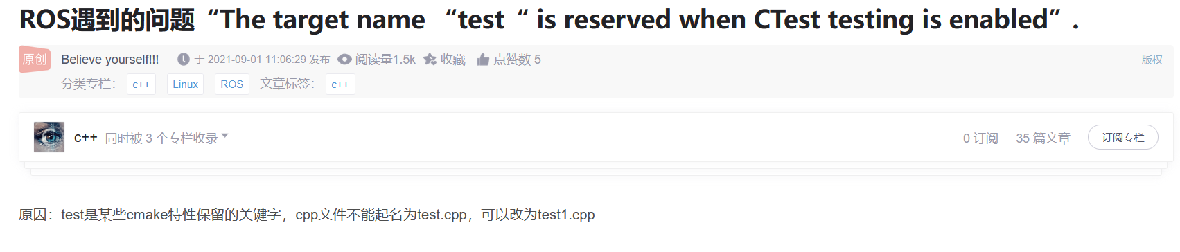对其解释为【可执行C++pp文件不可命名为test】,在此纠正,解释如下