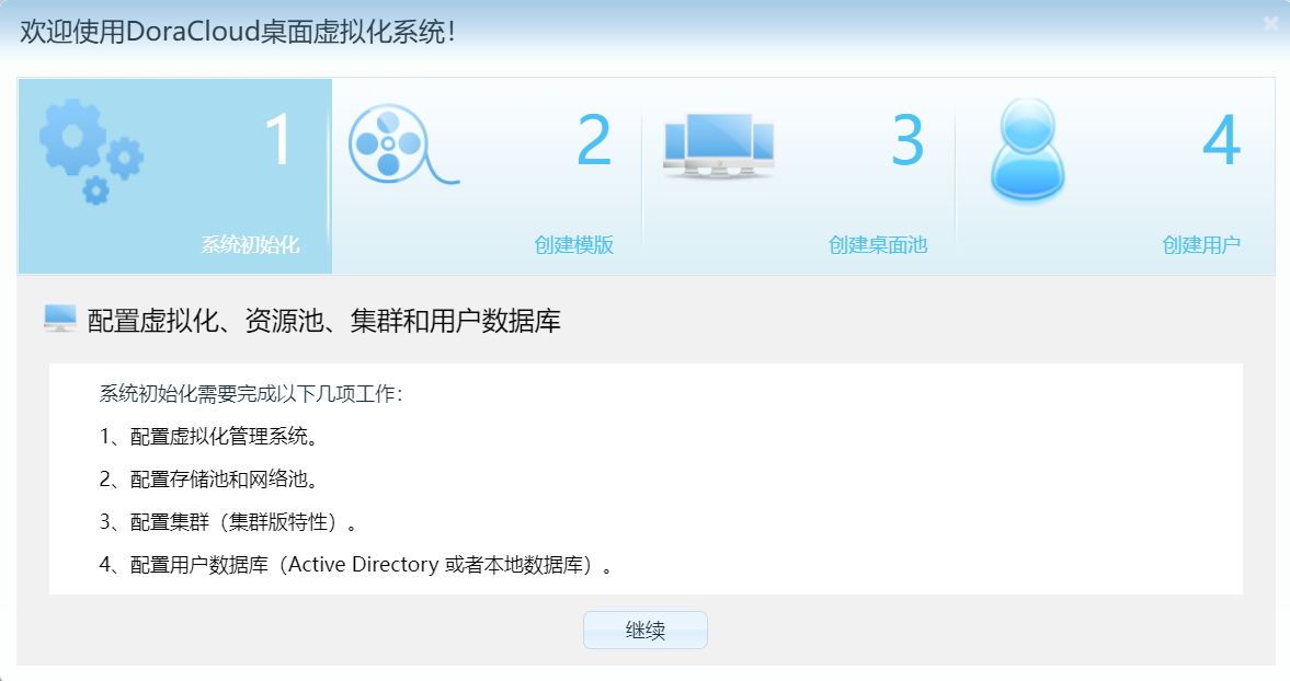 DoraCloud采用一体化设计理念,把桌面虚拟化所需的组件打包在一个虚拟机镜像中,极大的简化了虚拟桌面部署的难度。无论是单服务器的桌面云系统,还是数十个节点的桌面云集群,都只需要部署DoraCloud虚拟机镜像。