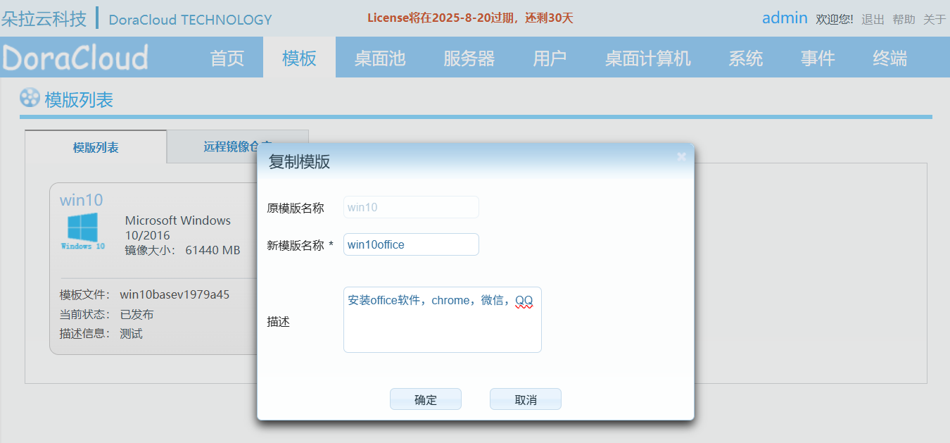 推荐的做法是:对模板win10执行复制操作,创建一个名为win10office的模板。后续会在这个新的模板中安装办公所需的应用程序。