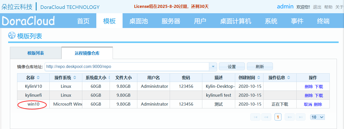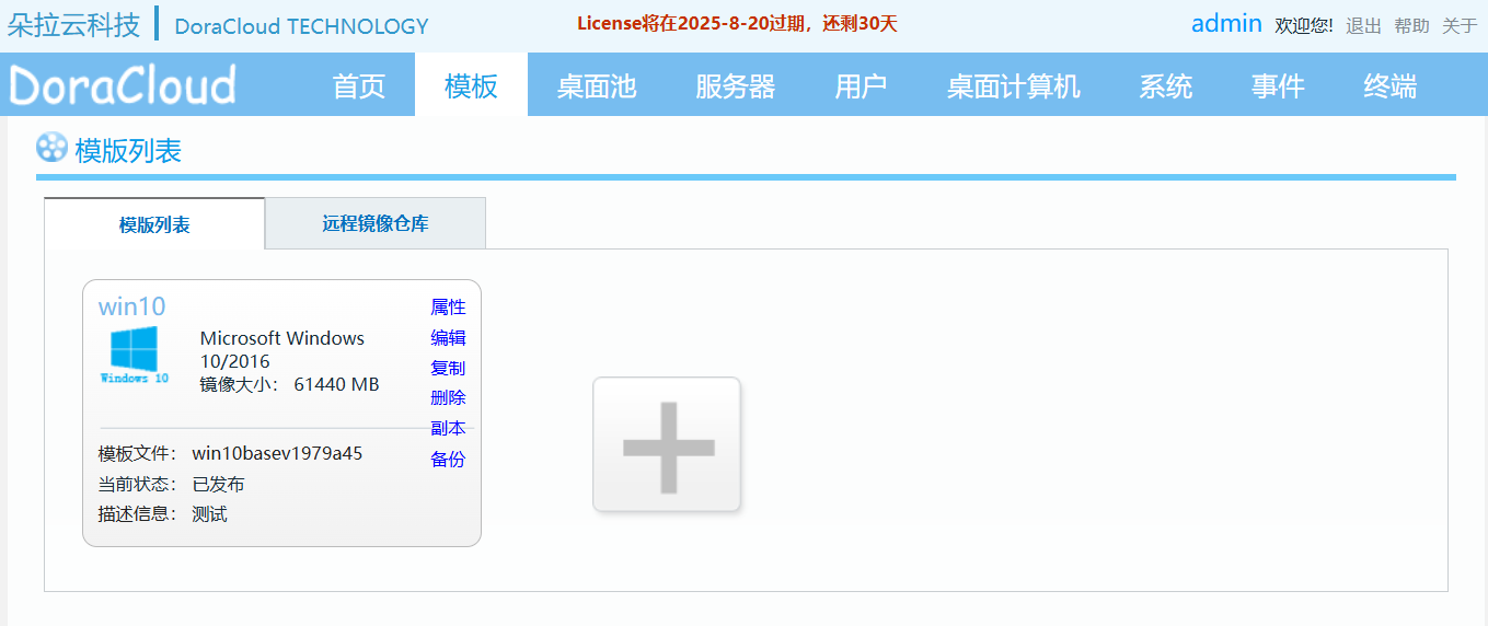 下载成功后,模板菜单中可以看到 win10 模板信息
