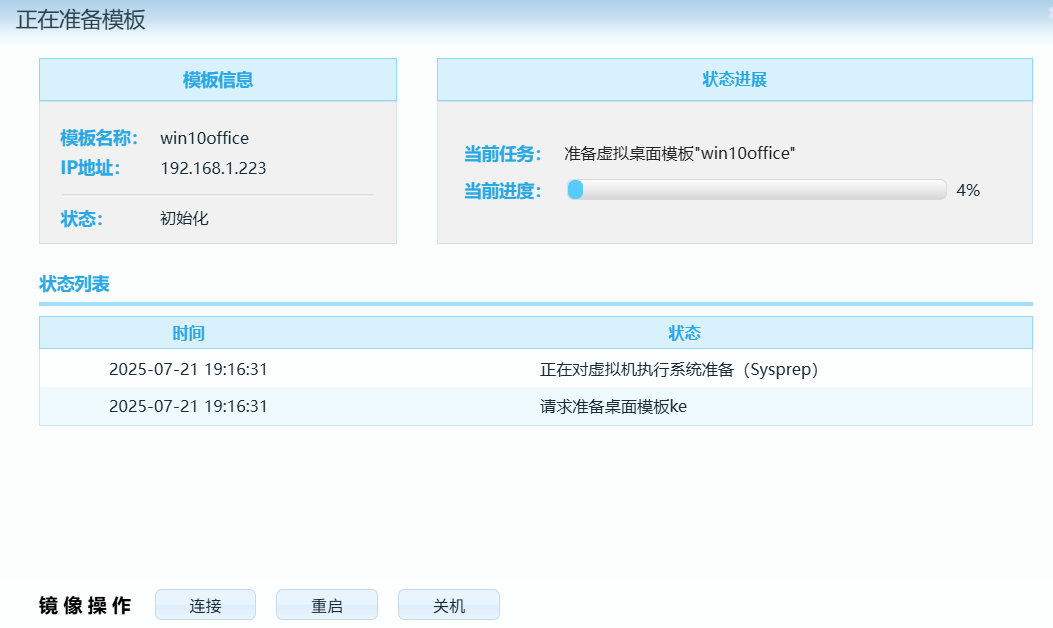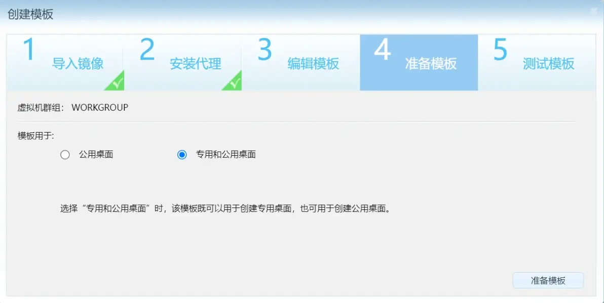 然后按下一步,选择模板类型为【专用和公用桌面】,接下来开始准备模板。