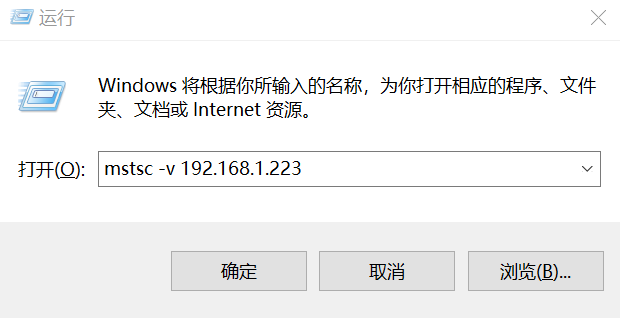 按照提示信息,登录编辑中的模板虚拟机。在Windows开始菜单中,启动运行,输入 mstsc -v 192.168.1.223