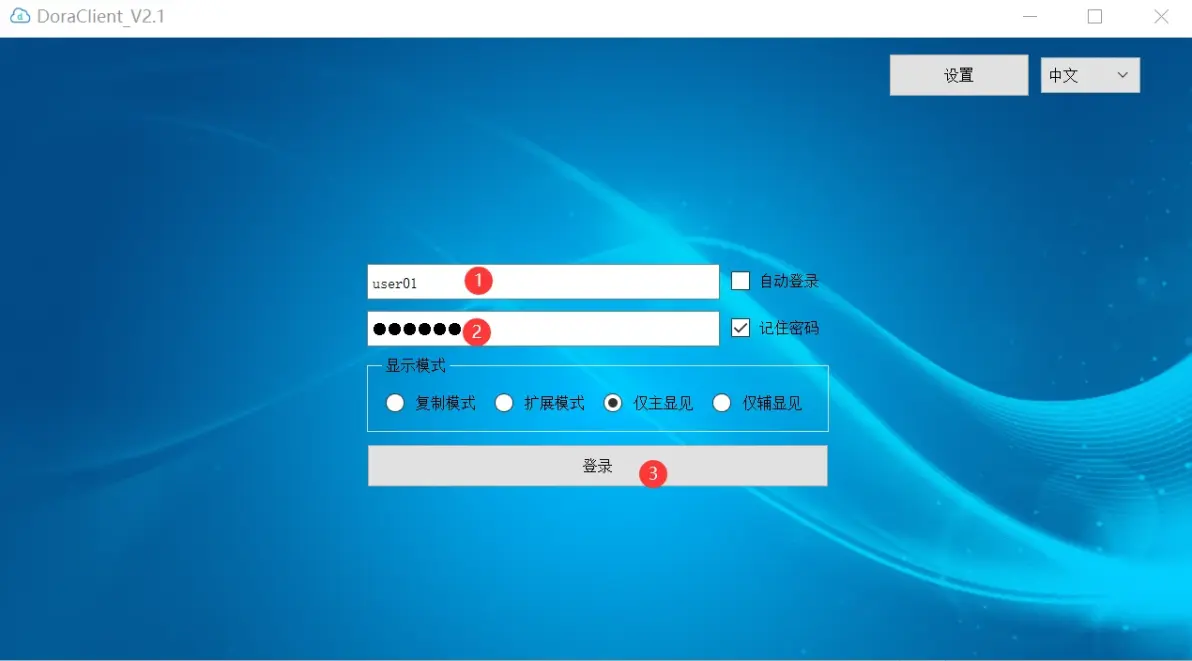 本方案采用的DoraClient。DoraClient是DoraCloud桌面云在Windows平台下的客户端软件。可以免费下载使用。