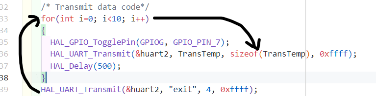 HAL_UART_Transmit(&huart2, TransTemp, sizeof(TransTemp), 0xffff);