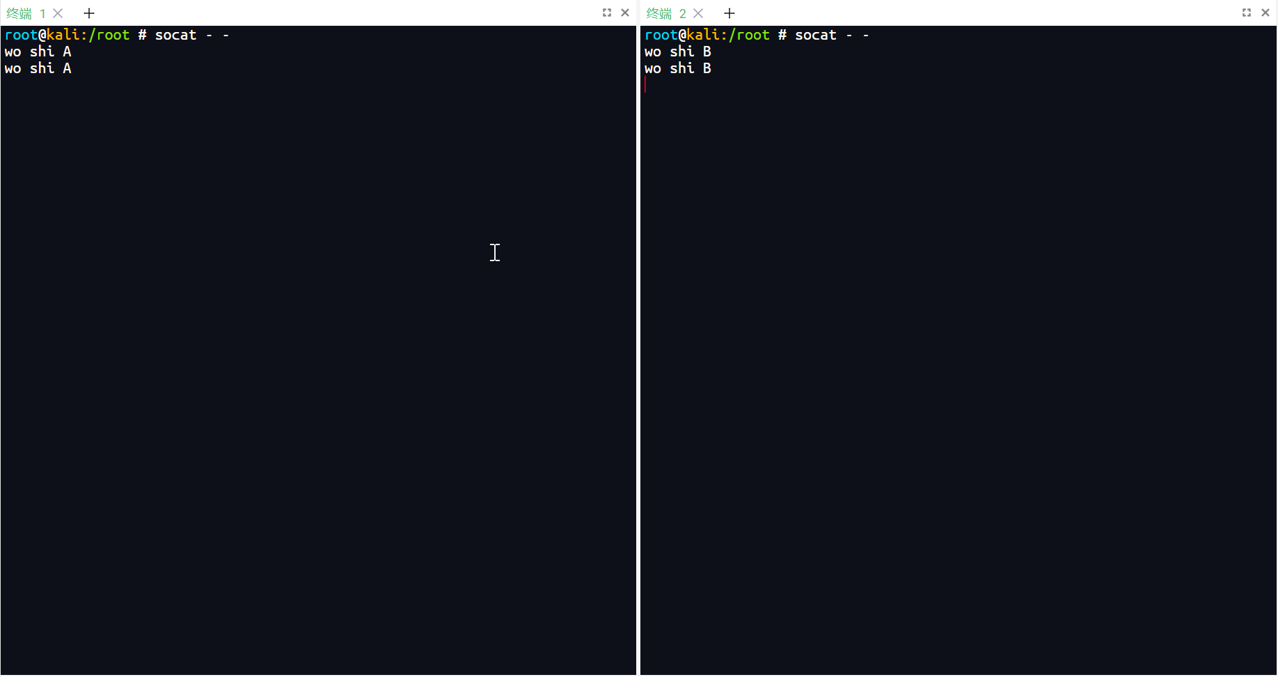 socat - tcp:127.0.0.1:1234 #STDIO TCP 客户端连接1234端口