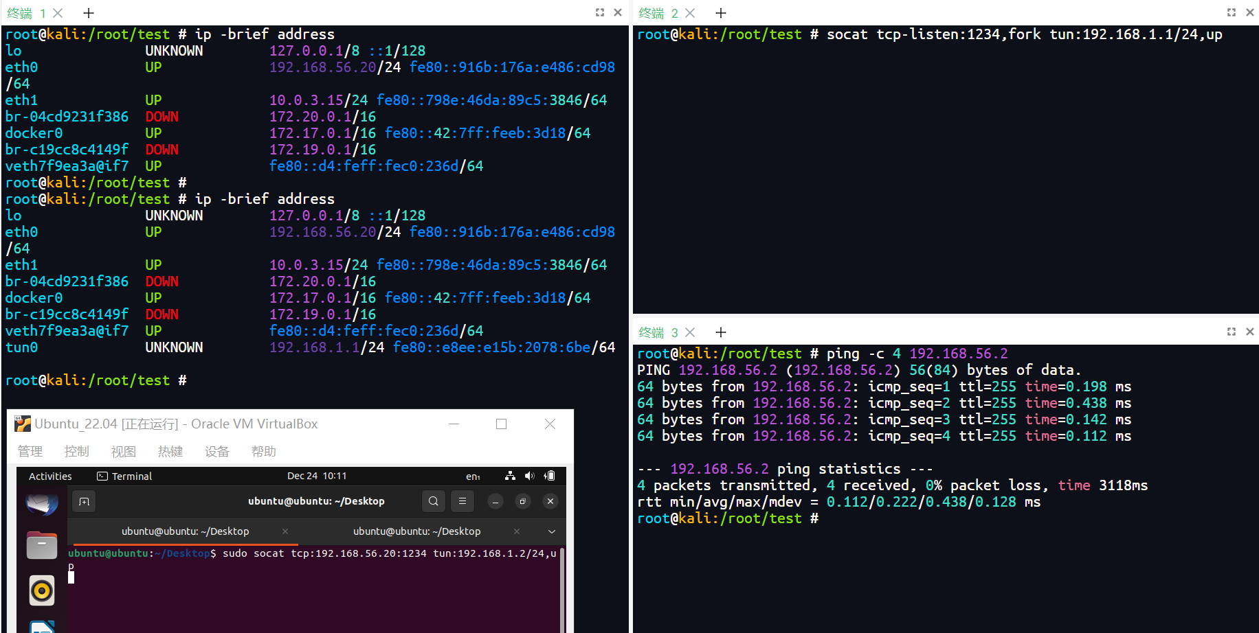 说明:所有连接到 TUN 服务端的终端,全都接入了一个自建的 TUN 网络之中,从而实现了异地组网。【在 Linux 中测试是成功的,但是在 Windows 中测试是失败的。】