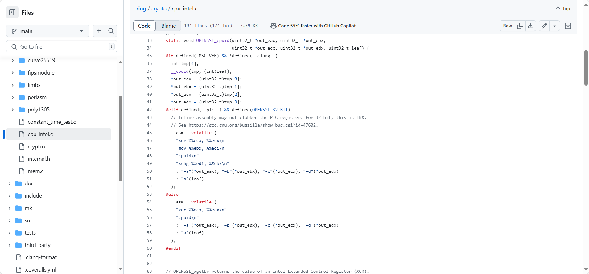 有很大篇幅都是用 Assembly 写的,再随便挑了一个源码看看