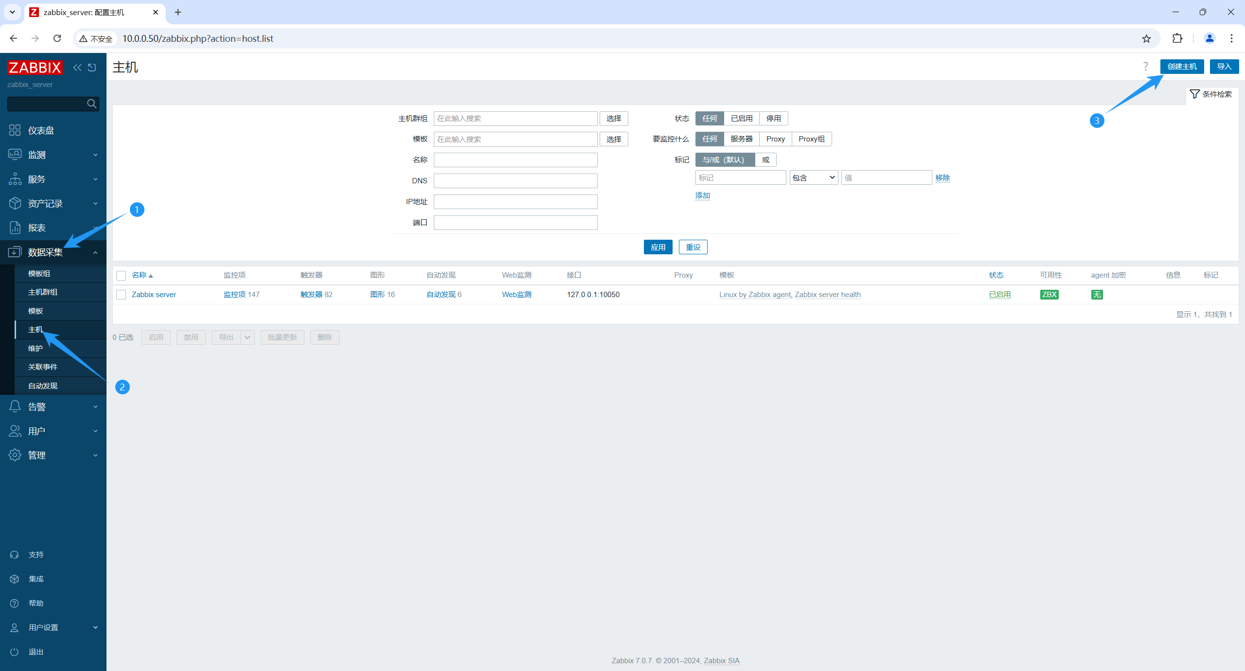 10.0.0.50 | zabbix-01 | 2C++4G |