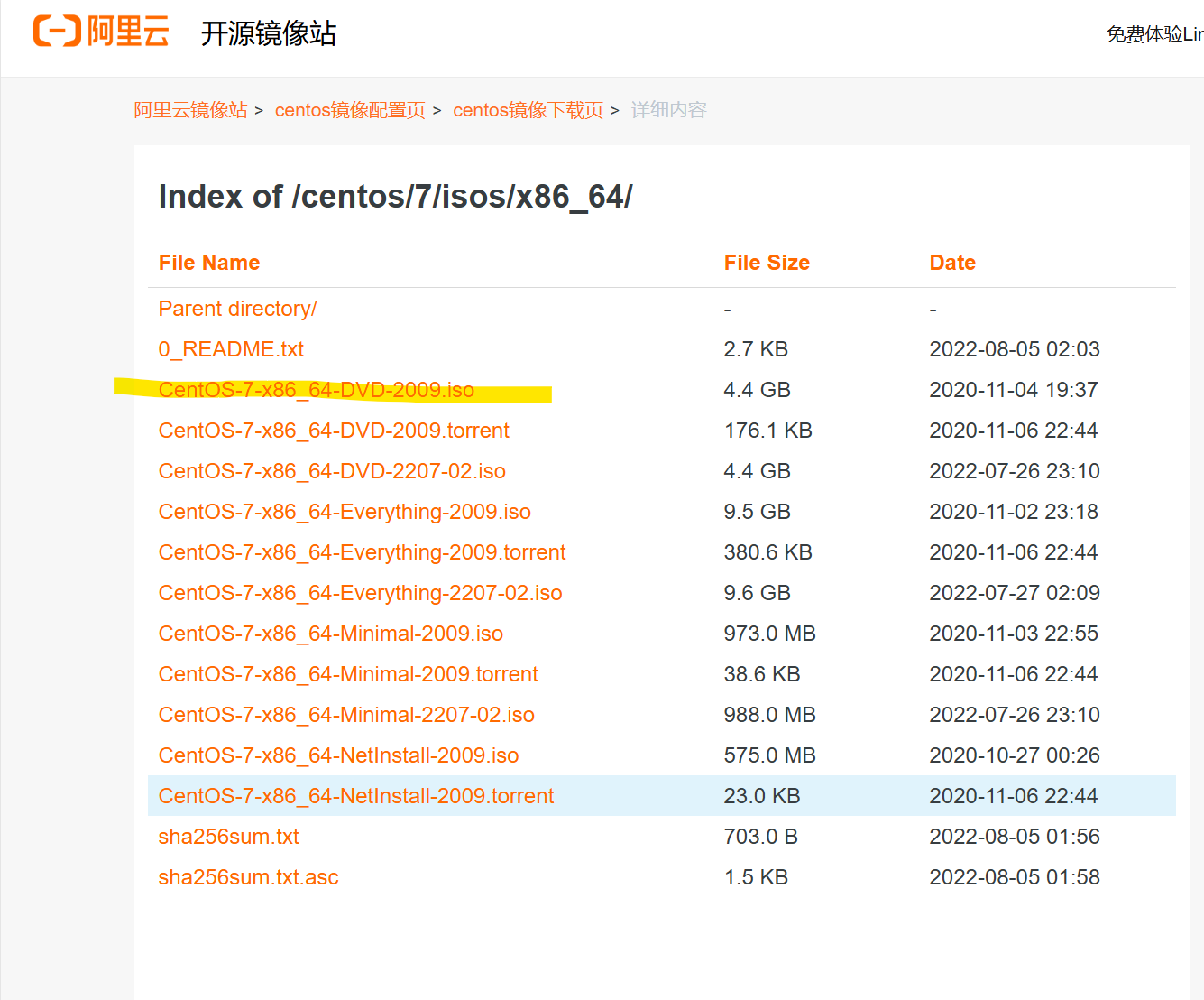 访问阿里云镜像站 ,选择标记镜像文件下载