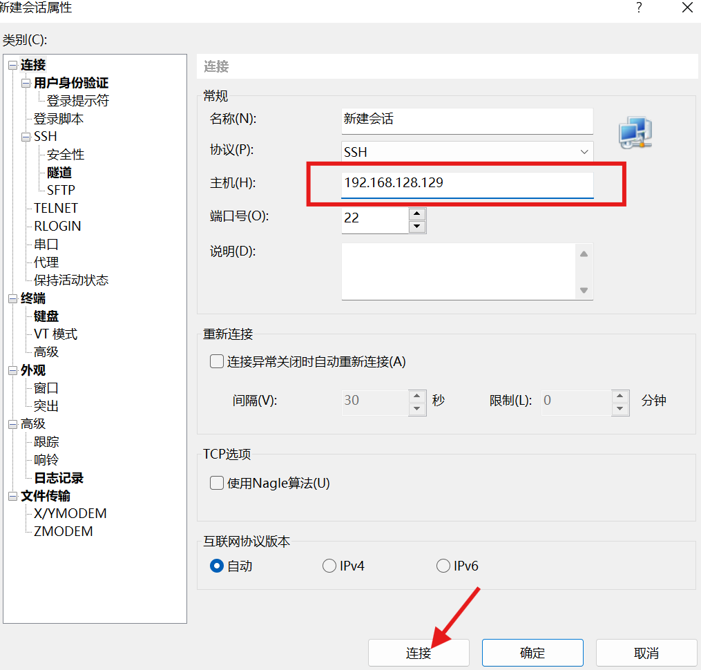 输入虚拟机被分配到的IP,其余不管,直接点击连接