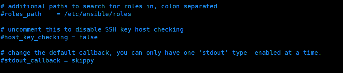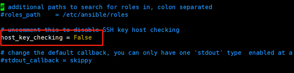 进入/etc/ansible/ansible.cfg文件,将host_key_checking = False取消注释或者增加该内容即可