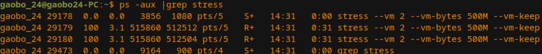 stress --vm 2 --vm-bytes 500M --vm-keep