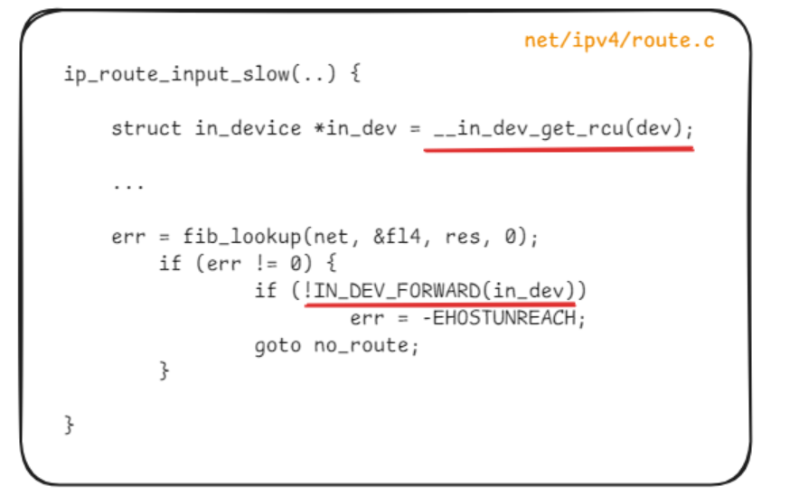 这个函数中,会根据当前网络设备 in_dev 的 forwarding 参数,来决定是继续转发,还是跳转到 ip_error。