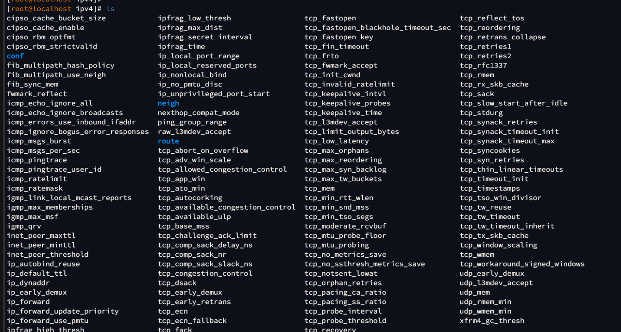 和 ipv4 网络相关的参数位于 /proc/sys/net/ipv4