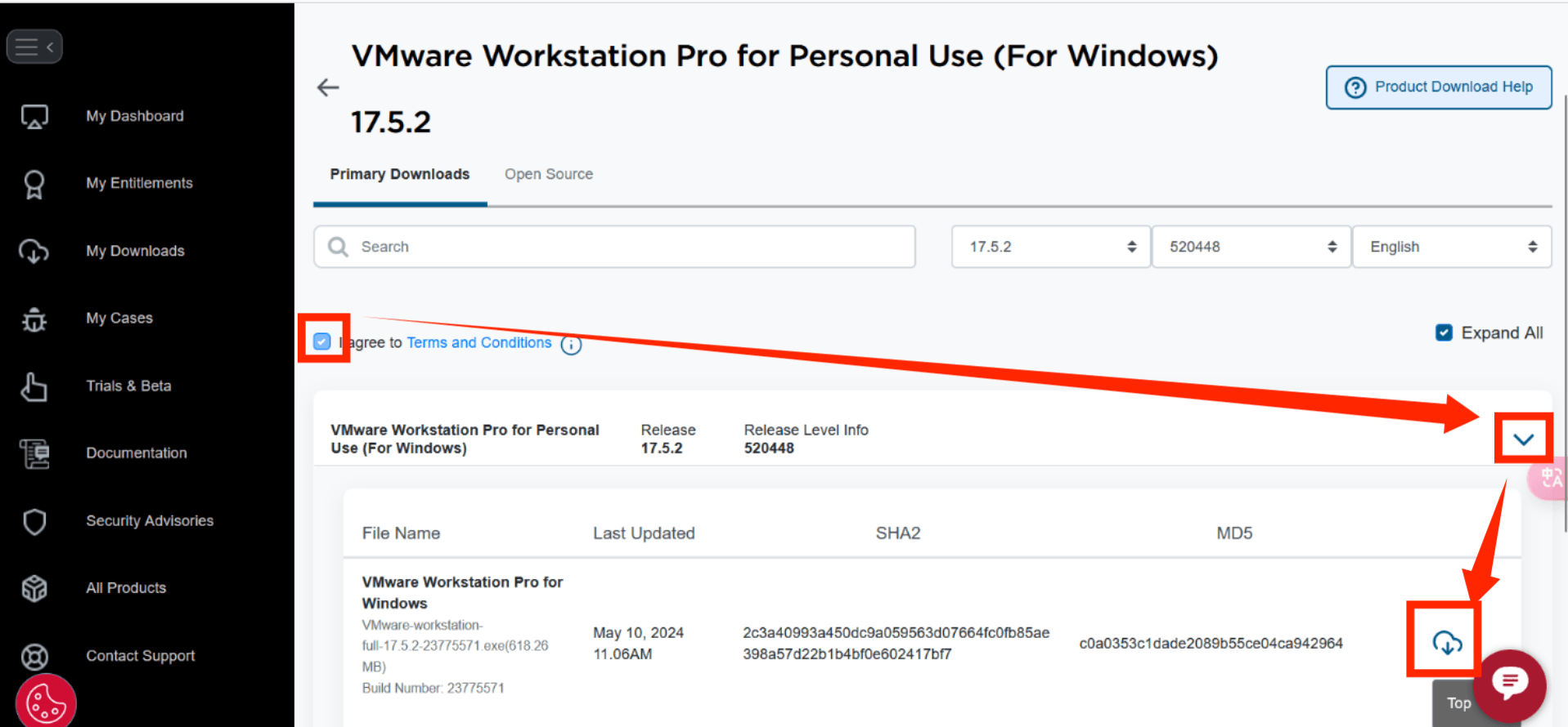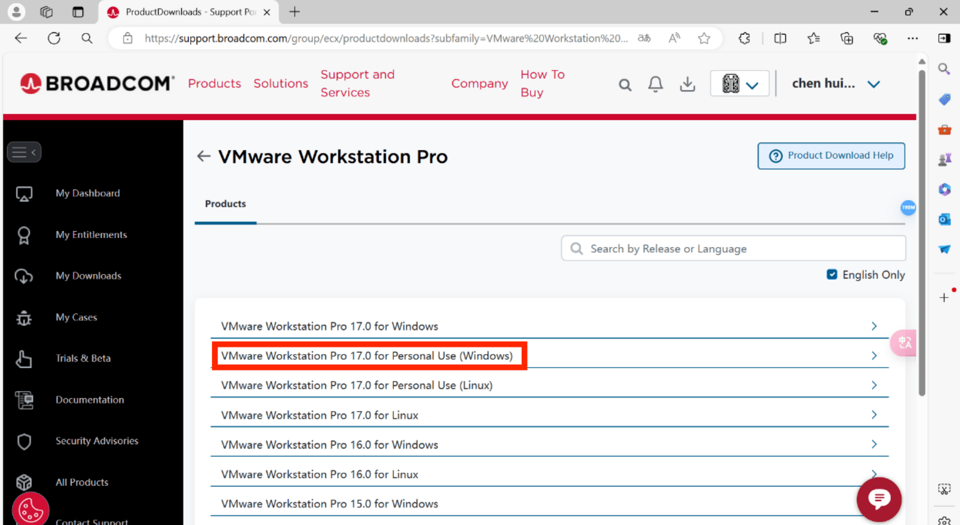 (1)vmware官网现已无法直接下载vmware,点击下载时会跳转到broadcom网站进入[](https://support.broadcom.com/group/ecx/productdownloads?subfamily=VMware Workstation Pro)
