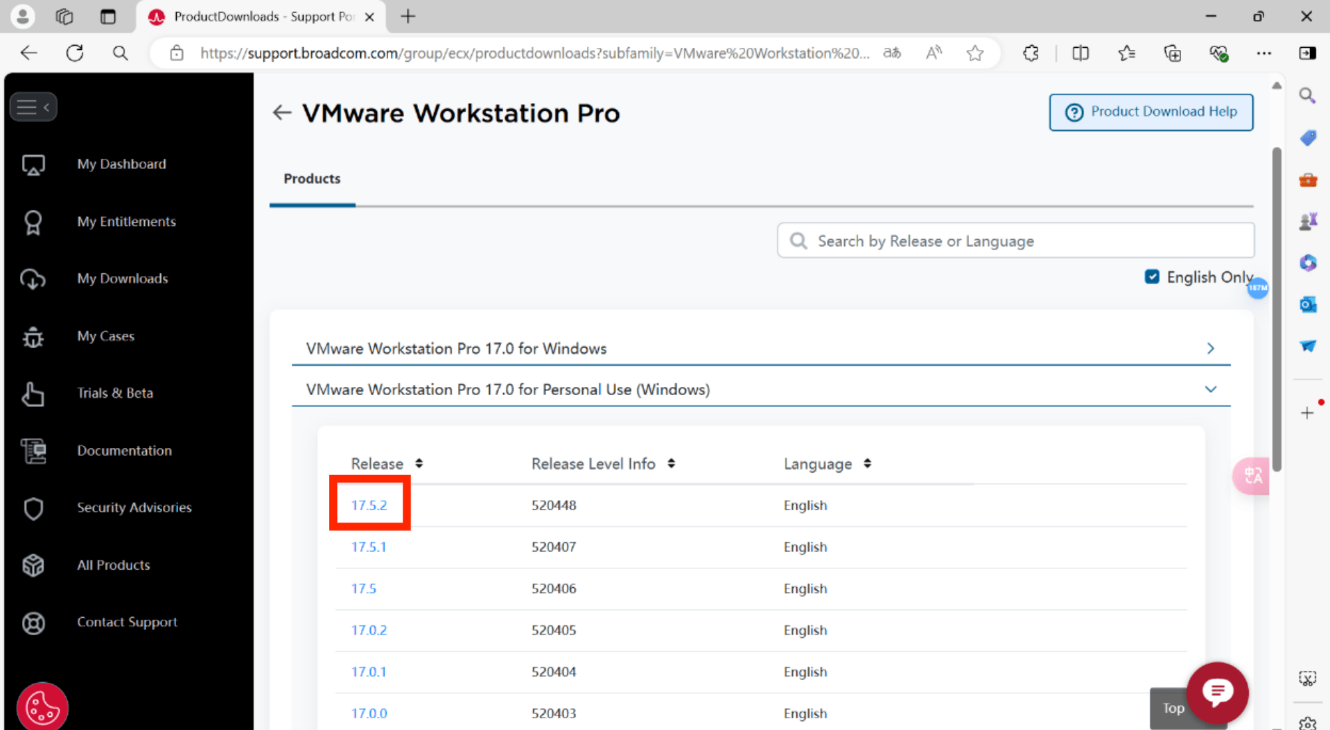 (2)登录后,重新打开第(1)步中的网址,选择最新版17.5.2,如下图所示: