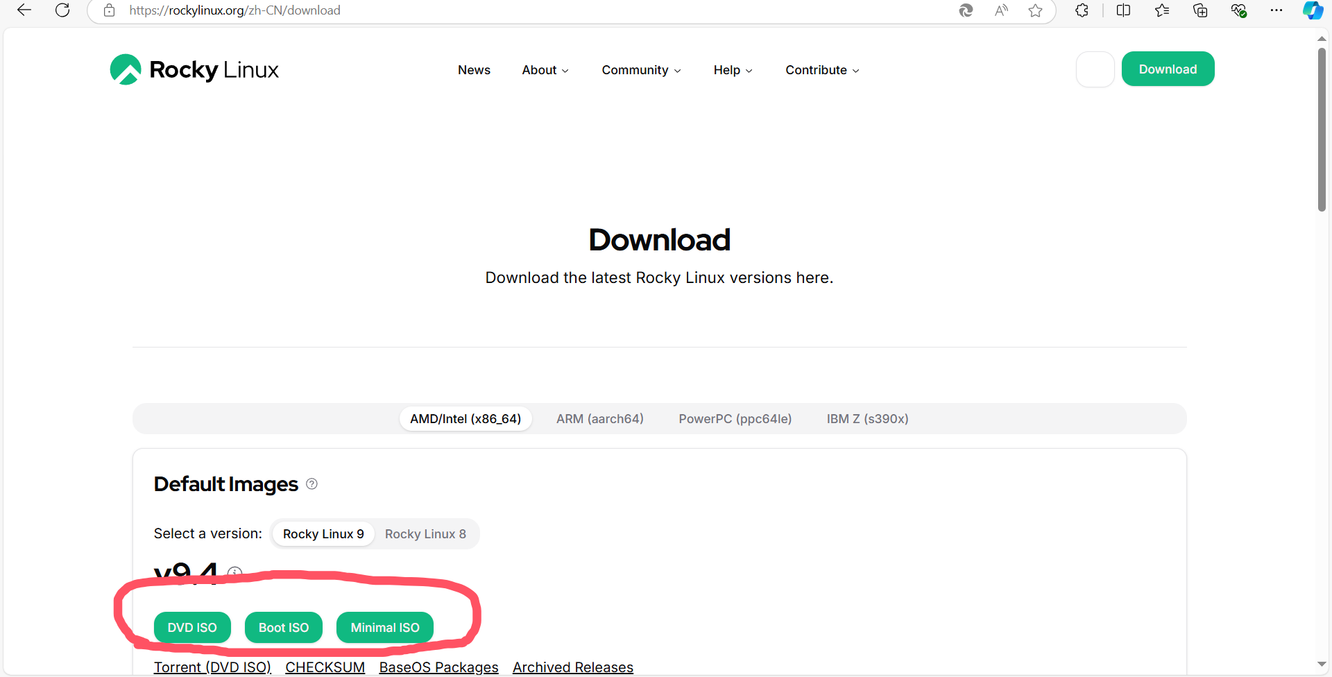 官网下载:https://rockylinux.org/zh-CN/download