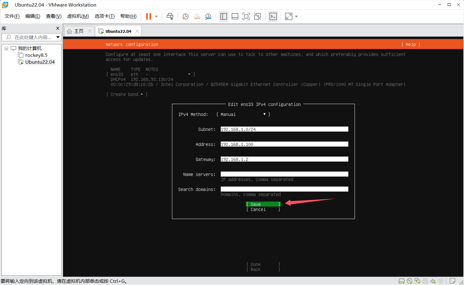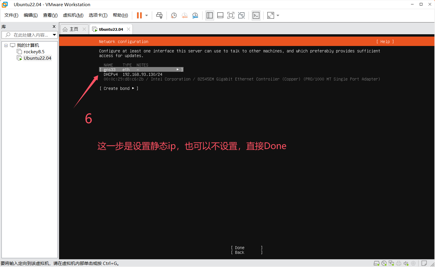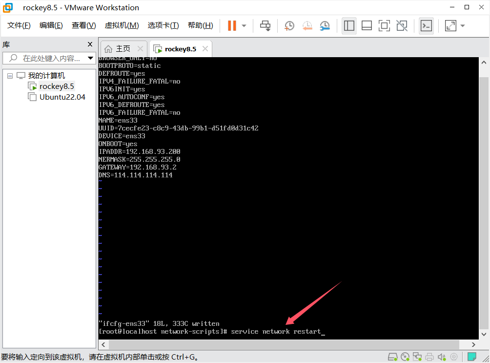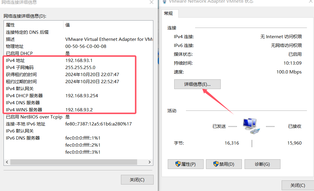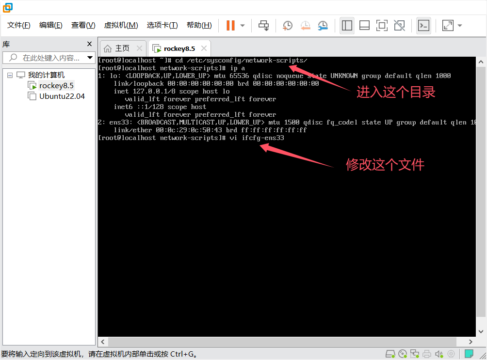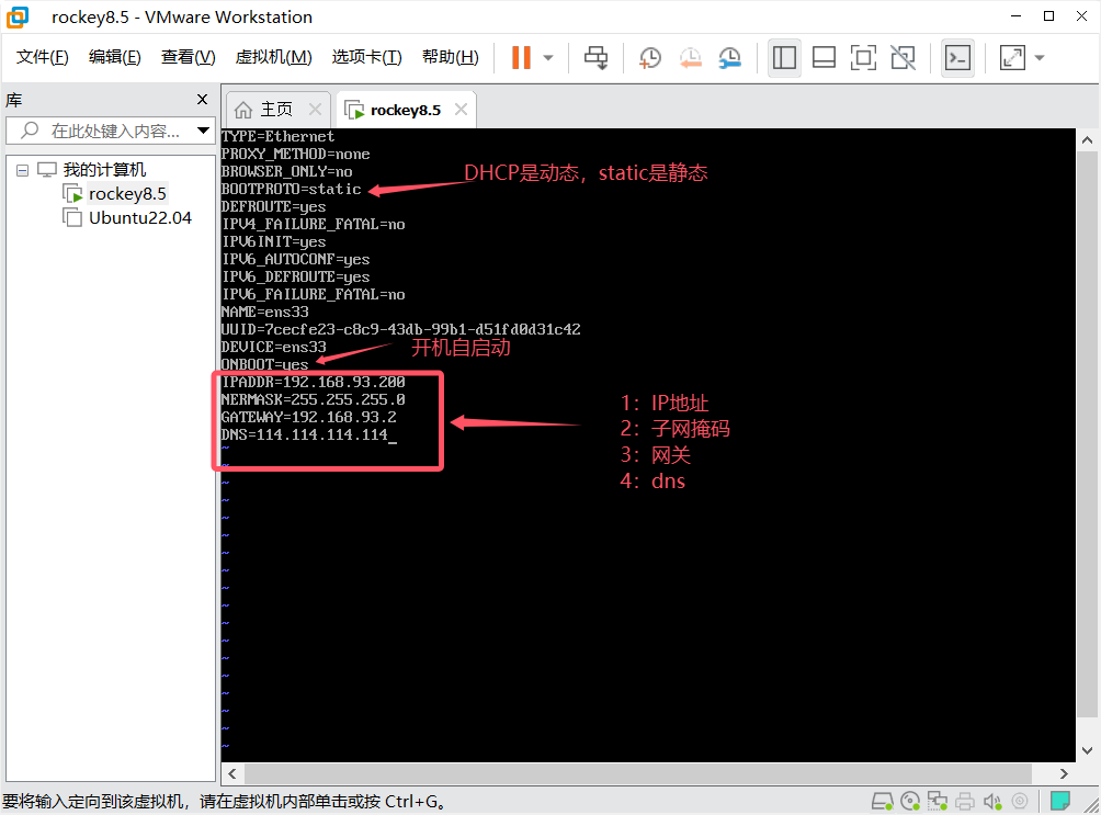 的是nat模式,所以,第一步是先获取vmnet8的ip信息,然后才能在rockey里配置静态ip。