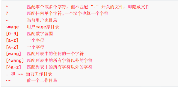 常见的通配符如下: